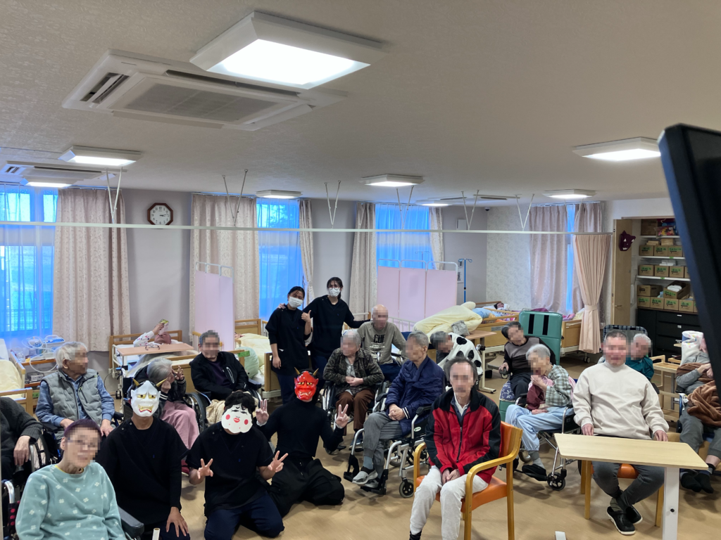 また、イベントの様子を見ながら楽しそうに笑顔を見せてくださる利用者様の姿もあり、それぞれの形で節分行事を楽しん