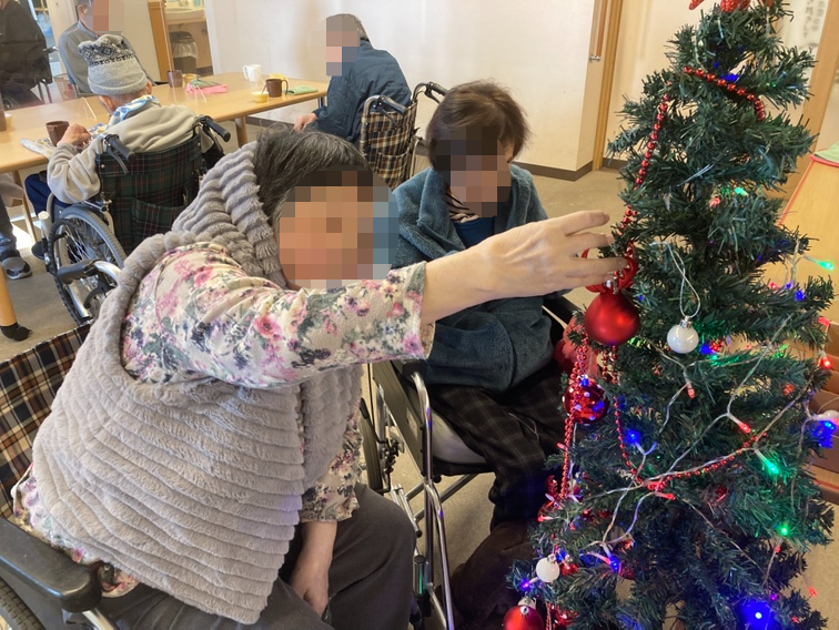 この日は、朝から「今日はツリー飾るんでしょ?」と楽しみにしてくださっていた利用者様の声があちこちから聞こえてきました。